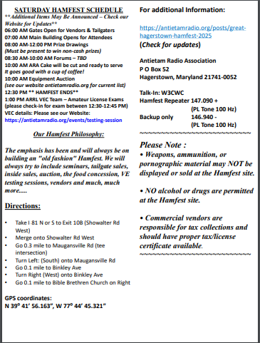 Their hamfest flyer tells the whole story.  It is presented here for your convenience.